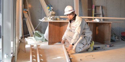 ボード、大工、貼床、建具、キッチン・ユニットバス、大工(展示会)、造作、ウッドデッキ、家具施工、エクステリア・外構