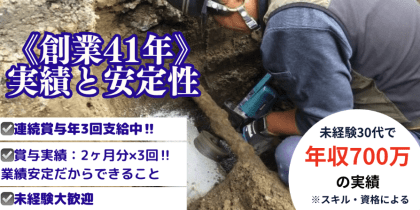 設備/雑工、衛生(配管工)、衛生(水道)、土工、重機オペレーター、舗装、水道工事、エクステリア・外構、施工管理(土木)、施工管理(管工事)