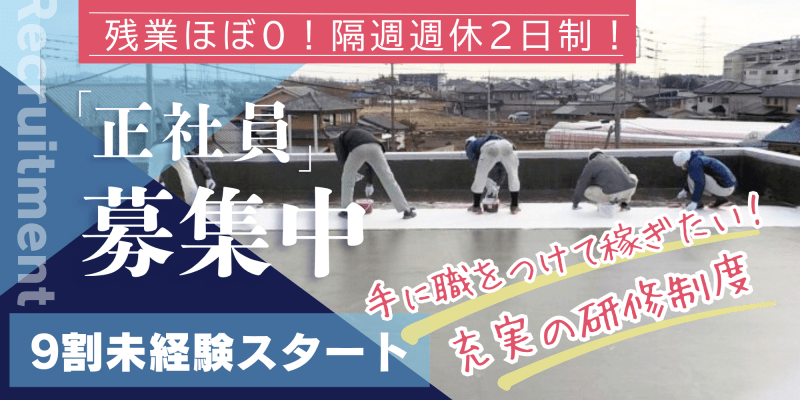 大手案件で安定性◎座学+3ヶ月研修期間有り◆完全未経験→手に職つける正社員!防水&断熱等/賞与年2回