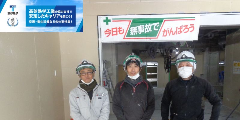 ◆未経験から手に職をつけたい方 基礎から丁寧に教育する体制が整っており、 未経験でも専門知識や技術を身につけることができます。 入社1〜3ヶ月は工場でダクトの製造を行って頂き、 そこから現場で先輩社員について実務を覚えて頂きます。 ◆明るく真面目で責任感のある方 明るく元気な対応ができ、真面目にコツコツと取り組むことができる方に向いています。 ◆長期的に安定した勤務を希望する方 長期的に安定した会社で働き続けたいとお考えの方にオススメです。 ◆チームワークを大切にする方 職場の雰囲気は和やかで、チームで助け合う文化が根付いています。 協力し合いながら仕事を進めることが好きな方に向いています。