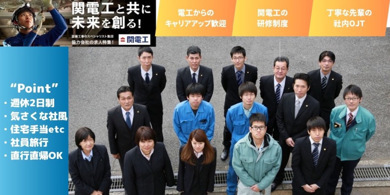 ◎公共工事から有名施設まで!スケールの大きな仕事ができる サブコンなどからの依頼も多数で、公共施設や誰もが知るような有名施設の案件も! 普段なかなか経験できない現場を通じて、幅広い電気工事のスキルを学べます。 スキルアップ・キャリアアップを本気で目指せる環境です! ◎ワークライフバランスも大切に。無理なく長く働ける 現場によって休日出勤が発生する場合もありますが、土曜は残業扱い、日祝は振替休日。 土曜出勤が残業扱いなので時間だけ見ると長く見えるかもしれませんが、実際の残業は少なめ。 メリハリのある働き方で、プライベートもしっかり大事にできます! ◎社長も夢じゃない!?実力主義でキャリアも収入も上を目指せる 「社長になるべき人が社長になる」 年齢や年功序列に関係なく、実力次第で役職もポジションもどんどん上を狙える職場です。 頑張った分だけしっかり評価されるから、やりがいも大きい! ◎創業50年の安定感。信頼と実績でしっかり稼げる 関電工さんをはじめとした安定した取引先からの受注で、会社の経営基盤は盤石。 腰を据えて長く働き続けることができ、安心してキャリアを築ける環境が整っています。 ◎未経験から安心してスタートできる職場 社内は協力的な雰囲気で、無理難題を押し付けるようなことはありません。 先輩の丁寧なOJTに加えて、関電工さんの研修や資格取得支援も充実! ゼロからのスタートでも、確実に力をつけていける環境です。