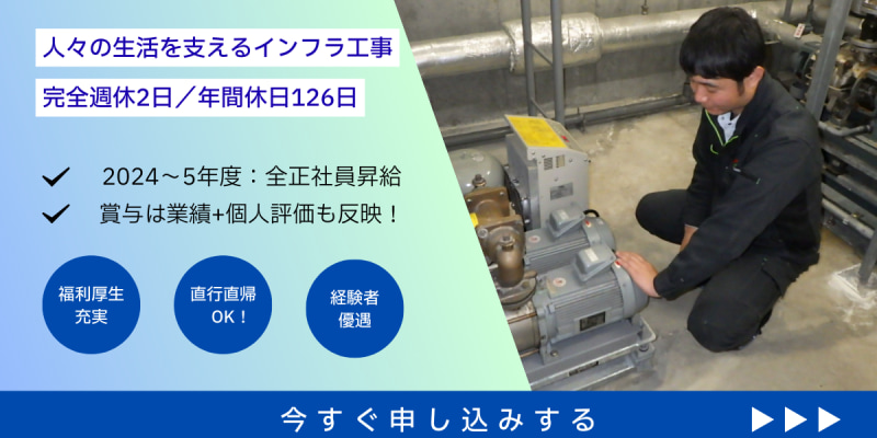 『公団・マンションに特化』給排水設備の施工管理募集◆年休126日/完全週休2日/賞与平均5.2ヶ月!