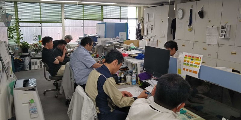▽30代・40代を中心に施工管理者9名が活躍中です。 ▽和気あいあいとした社風の会社です。 お互いの相談しあったり、大変な現場があれば手伝いに行く 助け合いの精神がある社員が多く在籍しています。 ▽見て覚えるスタイルではなく、しっかりと指導する スタイルで育成をしています。 ▽社員旅行は社員からの声により計画中です。 来年以降からは2年に1回程度は行けたらと考えています。