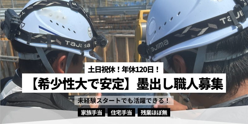 【ニッチで安定】墨出し職人募集!力仕事ほぼゼロ!残業ほぼ無!土日祝休!年休120日!住宅補助充実!