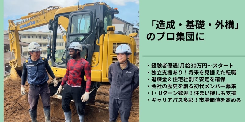 ================【注目POINT】================ ●月給30万円~55万円!年齢・経験問わず幅広く募集中 ●未経験でもOK!もちろん経験者・有資格者は優遇 ●20/30代の4名の社員が在籍!40代/50代の兄貴的な存在の方もぜひ入社してほしいです ●残業はほぼゼロ・休日は柔軟に対応可能です ●転勤なし!埼玉・東京・千葉・神奈川が勤務地 ●独立支援・資格取得支援あり!将来の選択肢が広がる ●会社規模を大きくできる、そんなやりがいも感じれます =========================================== はじめまして!株式会社ISK.の求人情報に目を留めてくださり、ありがとうございます。 当社は20代・30代のメンバーでスタートした、創業3年目の土木会社です。 少数精鋭だからこそ、あなたの意見やアイデアが会社の成長に直結する。 そんな面白さが当社にはあります。 ▼会社の未来を担う「土木作業スタッフ」を大募集! 会社の”これから”を共に創り上げていく仲間を、経験や年齢を問わず広く募集します。 完全未経験の方、大歓迎! 「やってみたい」その気持ちがあればOKです。 即戦力となる経験者の方、 あなたの力を貸してください! 頼れるアニキ! 若手に技術を繋いでくれる40代・50代のベテランの方も大歓迎です。 まさに会社が大きく飛躍する、一番面白いタイミングです。 「会社の成長に貢献するって、こういうことか!」 そんな、”今しか味わえない”やりがいと手応えを、ぜひ私たちと一緒に感じてみませんか? 将来的には、会社の中心を担う幹部・役員への道も用意しています。 少しでもワクワクした方、まずは一度お話ししましょう。ご応募をお待ちしています! □□□□□□□□□□□<仕事内容>□□□□□□□□□□□ ▼民間の現場での土木工事をご担当していただきます。 ・造成工事(開発工事、擁壁工事、雨水工事、CB工事など) ・外構工事(側溝工事、U字溝) ・根切り工事 ・舗装工事 など ▼1班/2〜3名体制で作業を行っております。 (重機オペ+手元作業員) ▼1現場の工期は1週間前後〜1ヶ月/3ヶ月まで規模や 内容により異なります。 ▼施工が終わったときには「ものづくり」の達成感や やりがいを感じることができます。形として残る仕事を したい方におすすめです。 ====================== 【土木/外構工事の経験者の方】 ====================== ◎能力・資格などによっては「職長」として現場を お任せしていきたいと考えております。 ※当社は20代後半、30代前半の社員が中心となって おりますので、兄貴的存在としてご活躍していただけるような 方と一緒にお仕事をしたいと考えています! ============ 【未経験者の方】 ============ ◎現場でのOJTにて技術の指導を行い、必要となる資格は すべて会社サポートの上で取得が可能です! =============== 【キャリアビジョン】 =============== ▶︎作業員として経験を積んだのち、職長や希望があれば 施工管理へのキャリアアップも歓迎します! ▶︎土木施工管理技士の資格取得の支援も行います。 ▶︎いま、ご入社していただけると『幹部候補』として 経営の右腕を担うことも可能です。