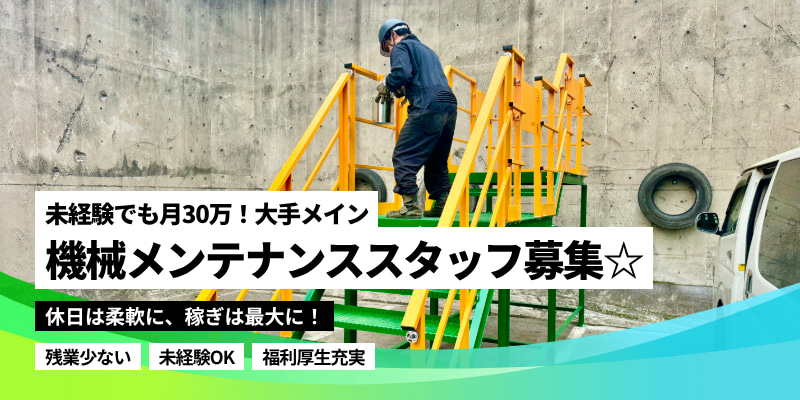 未経験30万〜!がっつり稼げる◎機械メンテ職人募集!休日は柔軟に取得できる環境◎大手案件で安心!