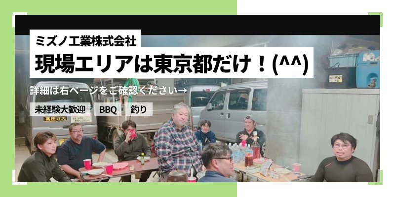 ========【注目ポイント】======== ◎創業65年の老舗企業で、都内中心の安定案件多数 ◎給水・排水・修繕工事など幅広い経験が積める現場 ◎夜間工事にも手当あり!頑張りがしっかり収入に反映 ◎社員同士の関係性◎釣り・BBQ・ゲームなど交流あり ◎日払い・手当支給あり!生活サポートも充実 ======================== 創業60年以上! 東京都大田区に本社を構えるミズノ工業株式会社では、 都内の住宅や道路の水道工事を手がけています。 今回は、正社員として衛生配管・水道工事に携わる仲間を募集! 現場は東京都23区を中心とした都内限定で出張・転勤もありません。 経験者はもちろん、未経験の方も「真面目に取り組む気持ち」があれば大歓迎! 長く働ける環境と、しっかり技術が身につく体制を整えてお待ちしています。 【具体的な仕事内容】 ■新築集合住宅・戸建住宅の給水・排水配管工事 ■道路から建物へ水道を引き込む取り出し工事 ■古い配管の撤去・更新作業 ■住宅内での修繕・漏水対応 ■水道局からの受託業務 【現場の特徴】 ■案件の多くはデベロッパーや工務店からの直接受注 ■水道の本管工事ではなく、戸建てや集合住宅の宅内配管が中心 ■現場は都内中心で、遠方への移動はなし ■チームでの作業が基本(個人での派遣ではありません) ■年間10〜20回ほど夜間工事あり(希望考慮、手当あり) 配管工事は道路の掘削からスタートし、バルブやメーター周辺の施工、建物内部の衛生設備まで多岐に渡ります。下水・外構・舗装まで幅広く対応するため、他社では経験できない業務に関われます。新設・更新・改修のいずれにも関わり、東京都内の水まわりインフラを支える手応えを得られます。案件は新築と改修の双方にまたがり、作業結果が目に見える達成感が魅力です。 【入社後の流れ(未経験者)】 ■1週目:見学+軽作業(ほうきでの清掃、現場の流れを観察) ■2週目以降:スコップを使った手掘り、資材運搬などを通じて実務に参加 ■将来的には掘削、配管、仕上げ、舗装まで一連の工程を担当できるようサポートします 技術レベルに応じて昇給制度を整備中。「どこまでできれば月収いくら」という目安を設定予定です。将来的には現場の責任者として活躍することも可能です。 【こんな人が活躍中】 現在、社員は13名。20代〜60代まで幅広い年代が在籍しており、10年以上勤務しているベテランも多数。 未経験から3年で職人として活躍する社員もおり、丁寧に育てる風土があります。