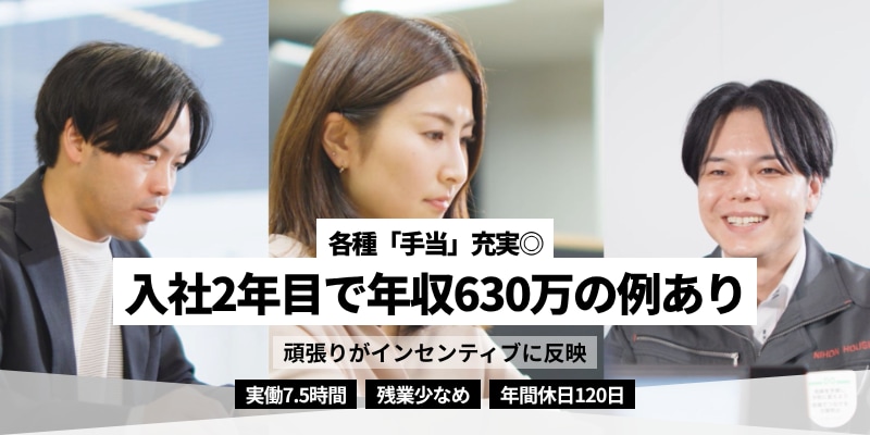 積み上げた経験にまだ続きを! 施工管理から営業、現場職から施工管理、まだまだ広がるあなたのキャリア! 営業に振り切るのも、施工管理を極めるのも、両方を武器にするのも自由。 日本ハウズイングの営繕技術コンサルタントは、キャリアの伸び方が青天井。 マンション・ビルの維持管理から大規模修繕まで幅広く関わり、 あなたの技術や提案力がそのまま価値になる仕事です。 さらに、資格取得支援・手当・インセンティブなど、努力が報酬に変わる制度も充実。 固定給の安心感に加えて、動いた分だけ収入もスキルも跳ね上がる環境が整っています。 「もっとできる」「もっと成長したい」 その感覚が少しでもあるなら、この仕事はあなたにとって強烈な追い風になります。 営業か?技術か?その先の未来まで、あなた自身で選べるステージへ。 ◆仕事内容 お任せするのは、マンションやビルの「維持・メンテナンス」を中心とした 営業技術(コンサル)+施工管理 の仕事です。 現場を訪れて状況を確認し、「どんな工事が必要か」「どう改善できるか」を 企画・提案するところからスタート。 小規模修繕から大規模修繕まで、建物を長く守るための工事を総合的に担当します。 営業を極める道・施工管理を極める道・両方に挑戦する道 を選べ、 あなたの得意や希望に合わせて、キャリアの幅を自由に広げられる環境です。 また、設備更新の提案、各現場の定期視察、漏水トラブル対応、理事会での説明など、 マンション管理に深く関わるやりがいの大きい仕事。 コミュニケーション力や建築知識を活かして、“建物を守るプロ”として成長していけます。