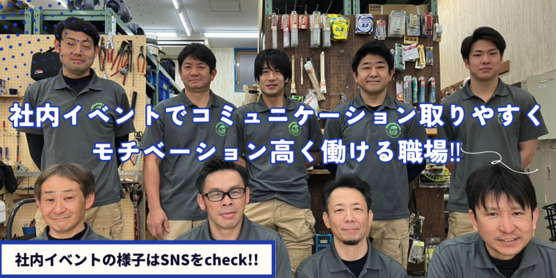 ▼モチベーション高く働ける職場! ・一番大事にしているのはコミュニケーション力 スキルも大事。ですが、弊社で一番に見ているのはお客様に対して 接し方や、説明の仕方など「お客様に寄り添えているか」です。 ・社内コミュニケーションが取れる場面が豊富 社内の雰囲気・人間関係は良好です。 色々なイベントでコミュニケーションを取りやすくなる 環境づくりを心がけています。 ◆未経験から多能工になれます! ・これまでにも未経験からキャリアを スタートした社員も数多く活躍中。 リフォームに関すること、全てをイチから指導させていただき、 どこでも活躍できる人材に成長することが可能です。 前職は販売職だった社員も現在入社13年目。 今では会社の先頭に立って作業してくれる人材に育ちました!! ◆社内での講習会 ・「見て覚えろ」は絶対に言いません。 リフォームについてのノウハウをしっかりと 講習会で身につけていただくことができます。 この環境を活かして多能工を目指してください。 ◆インセンティブ(報奨金)支給あり ・現場にて追加工事を受注した場合には、 利益に応じてインセンティブを支給しております。 追加工事をもらうためには、コミュニケーション能力 信頼関係の構築、スキルなどが必要となります。