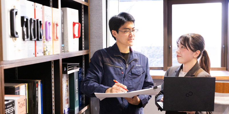 ◆社員A(中途入社・前職:広告系) うちは、ほぼ未経験スタートの メンバーが多いです。 私も中途で入社して、前職は 広告業でした。 もともと“何かを作る”のが好きで、 料理人でも良かったくらいなんですけど、 たまたまブレインを知った時に、 “お店を作るのって楽しそうだな”と 思ったのがきっかけでした。 実際に仕事をしていて一番楽しいのは、 何もないところから、 日に日に形になっていって、 最終的にお店になる瞬間ですね。 作るのが好きな人間からすると、 本当に面白い仕事だと思います。 ◆社員B (4年目・第二新卒入社・前職:講師) 私は4年目くらいで、 入社前は水泳のコーチをしていました。 正社員ではなくて 安定しない働き方だったので、 “会社員として安定して働きたい”と 思ったのが転職のきっかけです。 会社の雰囲気は、いい意味で アットホームだと思います。 お昼の時間が一緒になるとみんなでご飯を食べたりします。 現場の状況によっては勤務時間が不規則になることもありますが、 フレックスで定時にとらわれ働けるのは柔軟でいいと思います。 初めは少し大変でしたがその分、 休みは取れるタイミングで きちんと取れる体制ですし、 リフレッシュの休暇もあって、 会社としてはしっかりしていると感じています。 協力会社さんともやり取りしながら、自分が製作依頼したものが現場に入って、 完成していく過程を見られるのが、 この仕事の醍醐味だと思います。