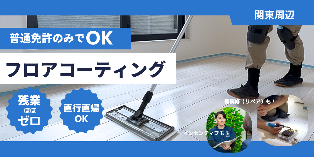 直行直帰OK・残業ほぼゼロ!年休120日◎未経験から新築フロアコーティング施工・賞与あり
