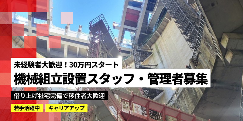 《必須条件》 □出張を楽しめること!□普通自動車免許(AT限定OK) 《居住地不問》 □全国どこからでもご応募可能です! 《経験不問》 □未経験からのご応募も大歓迎です。 《経験者は優遇します》 □機械動力工事/重量鳶/鉄骨鳶の経験者は月30万円〜 □施工管理経験者は月40万円〜 《性別不問》 □機械動力工事・溶接経験者は性別不問で採用! 《歓迎資格》 □施工管理技士(土木・建築) □中型免許、大型免許 □クレーンデリック