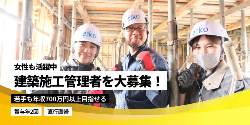 □□□□□□□□□□⦅注目POINT⦆□□□□□□□□□□ ●業界でも数少ない『建築家専門』の施工会社! ●女性多数活躍中!性別不問で採用受付中 ●有名雑誌の表紙を飾るような物件に携われます ●フレックス制・直行直帰・テレワーク可!裁量性高い環境 ●20代多数活躍中・中堅/ベテランまでバランスの取れた年齢層 ●健康経営法人認定など国や市の認定でグランドスラム達成! □□□□□□□□□□□□□□□□□□□□□□□□□□□□ 株式会社栄港建設は県内でも数少ない『建築家専門』の 施工会社です。 『建築家』とタッグを組み、自由設計の戸建住宅、 そのほか、保育園、クリニック、商業施設などの新築工事、 リフォーム/メンテナンスを行なっております。 ◆施工管理経験者を高待遇で限定募集! 有名雑誌の表紙を飾るような物件に携われる機会もあります。 雑誌にあなたの名前が載る日も、そう遠くはないかも しれません。 お一人でも多くの方の目に留まり、ご応募いただける ことを楽しみにしております。 ━━━━━━━━━━━《仕事内容》━━━━━━━━━━━ ◎『新築現場』『リフォーム/メンテナンス』の2部署にて 施工管理者を募集しております。 ◎適正/ご希望に応じた部署にて配属いたします。 【新築現場】 ・自由設計の戸建住宅 ・保育園、クリニック、商業施設など 【リフォーム/メンテナンス】 ・戸建住宅、保育園、クリニック、商業施設などでの 内装リフォーム、メンテナンスの管理を担当していただきます。 ================ 【主な施工管理業務】 ================ ▼建築家との打ち合わせ ▼施工図面の作成(JW-CAD) ▼見積もり・積算 ▼建築資材の発注業務 ▼協力会社の手配 ▼現場管理(安全・工程・品質) *新築物件の場合には、さまざまな職人を手配し現場管理を 行なっていただきます。 (基礎工事、大工、設備、電気、塗装、クロス、左官、 建具、板金、家具など) ============ 【入社後の流れ】 ============ ●まずは先輩の施工管理者に同行していただき、 当社の仕事の進め方等を理解していただきます。 ============================ 【モノづくりに没頭!働きやすい環境】 ============================ ◆現場への直行直帰/テレワーク、勤務時間の フレックス制など、裁量性高くお任せする自由な働き方 ◆「掛け持ち」での管理業務を行わないので、 原則1人1現場となります。 時間に追われることなくモノづくりに没頭していただけます。