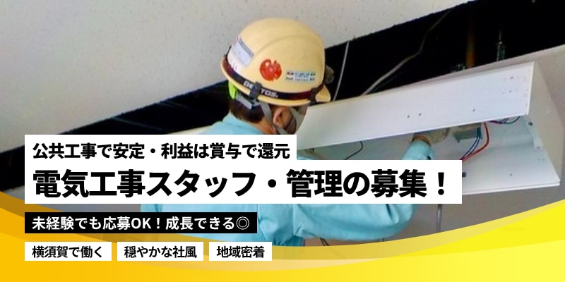 □□□□□□□□□⦅注目POINT⦆□□□□□□□□□ ●【圧倒的な安定基盤】 横須賀市優良工事表彰を2回受賞!公共事業メインで不況に強い。 ●【ワークライフバランス】 残業少なく、土日休みで家族や趣味の時間も充実。 ●【頑張りを還元】 年2回の賞与+決算賞与に加え、現場利益に応じたインセンティブあり! ● 【定着率◎】 20代〜60代まで活躍中。 「人柄重視」の採用だから、人間関係のストレスとは無縁です。 ●【移住も応援】 葉山・横須賀の豊かな自然の中で働く。 U・Iターン支援も相談に乗ります。 社宅完備のため入居相談可能! □□□□□□□□□□□□□□□□□□□□□□□□□ 日産電設株式会社は、横須賀市に拠点を構え、 公共事業をメインに電気工事・施工管理業務を行なっている 会社です。 \電気工事士・施工管理の2職種で正社員募集中/ 横須賀市への移住、Uターン希望の方は要相談でサポートをいたします。 社宅完備のためご入居のご希望があれば相談可能です。 1名でも多くの方にご応募いただけることを期待しています。 ======================== 《地域に貢献!公共事業がメイン》 ======================== ●横須賀市、逗子市、葉山市、神奈川県の公共事業 での電気工事がメインとなります。 現場は会社から車で30分圏内がほとんど。移動時間が短い分、早く帰れます。 ※約60%が公共事業、民間工事にも対応しております。 ●主な施工現場(公共事業) ・学校 ・図書館 ・公園 ・道路照明、県道トンネル ・庁舎 ・浄化センター/ポンプ場 など ※平均工期:6ヶ月 ●主な施工現場(民間) ・ホテル、マンション等 ・複合ビル ・工場 など ●主な取引先(民間) ・住友電設 ・四電工 ・関電工 ・トーエネック など ============== 《電気工事士の方》 ============== ▼主な施工内容 各種電気設備、屋内配線工事、照明器具の取り付け・配線、 盤の取り付け、空調設備に付随する電源工事、土木電気にも 対応いたします。 現場での作業は2〜4名、多くても7〜8名体制で行います。 「今の会社で、責任だけ増えて給与が変わらない…」と悩んでいる30代の方へ。 当社は、現場を円滑に回し、利益を出してくれた社員をしっかり評価する文化があります。 公共工事という安定した土俵の上で、あなたの経験を「高収入」に変えてみませんか? ============= 《現場代理人の方》 ============= 現場の代理人として管理業務をメインに担当していただきます。 <主な管理業務> ▼打ち合わせ(役所の担当者、民間企業の担当者) ▼施工図面の作成 (JW、AutoCAD、T-fasなど使い勝手の良いものを使用していただきます) ▼協力会社、資材の手配 ▼現場管理(安全面、工程、品質の管理) ▼書類作成、写真撮影