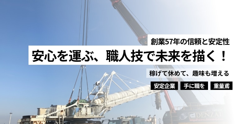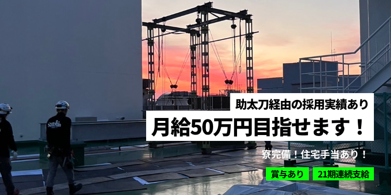 助太刀経由で入社した社員の声 応募と入社は、求人サイト「助太刀」を見て決めました。 前職では鉄骨鳶の仕事をしていましたが、 退職後も玉掛けや揚重に関わる仕事をしたいという思いがあり、 この業界、特に重量鳶の仕事に飛び込むことを決めました。 実際に現場に出てみると、非常に大きな物を動かしたり、 揚重したりと、日々驚きの連続ですが、 仕事を終えた後の達成感は格別で、大きなやりがいを感じています。 仕事の魅力は、ほぼ毎日違う現場に行くため、 新鮮な気持ちでわくわくして仕事ができる点です。 また、出張で様々な場所に行けるのも楽しいです。 会社の雰囲気はとても明るいですが、 仕事になるとメリハリがあり、困っていることがあれば 分かるまで親身になって教えてもらえる環境があります。 アピールポイントとしては、出張の際には3食全て会社が負担してくれ、 さらに出張手当も支給されるため、非常に嬉しい待遇です。 入社を決意したエピソードとして、親身に相談に乗ってもらえたこと、 そして給料や各種手当が魅力的だった点が挙げられます。 これから応募を考えている方へ、現場で初めて仕事をする方も 経験者の方も、誰もが仕事しやすい環境が整っていますので、 ぜひ一緒に働きましょう。