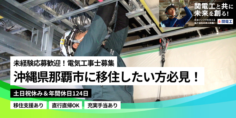 土日祝休、年休124日!沖縄移住/Uターンも大歓迎!電気工事士募集!賞与年3回支給
