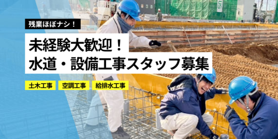 【月給30万〜55万円】土日祝休/賞与年2回【水道・ガス管工事】公共/民間現場▶作業員・事務員の募集
