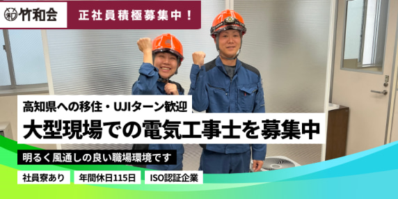 ●大手からの信頼+公共工事も手掛ける電気工事士を募集/高知県への移住歓迎!性別不問で積極採用中。