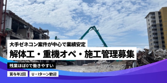 【大手案件×安定基盤】月給35万スタートも可能!未経験でも1人前の解体工職人へ!残業ほぼ0で環境充実
