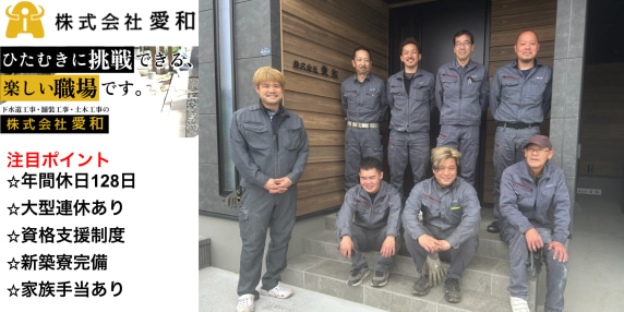 【月給30万〜55万円】土日祝休/賞与年2回【水道・ガス管工事】公共/民間現場▶作業員・事務員の募集