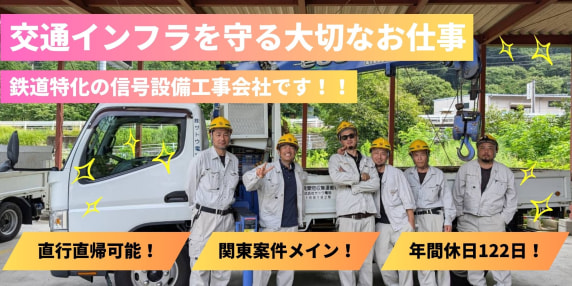 『鉄道に特化した信号設備工事』7年連続賞与3回/交通インフラを支える安定企業/経験不問!年休122日