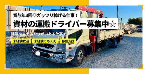 建築資材の運搬ドライバー/未経験でも月給30万円以上/土日祝休み/奈良