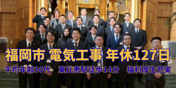年休120超・土日祝休◎賞与昇給/面接1回|月24~50万/福岡新築電気工事 未経験者、経験者可