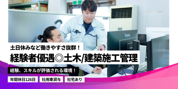 【経験者優遇・残業少なめ】◆年休126日&土日休◆社宅・社用車完備/建築/土木施工管理募集