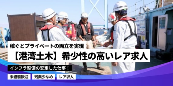 【レア求人】港湾土木工事/クレーンオペ・施工管理技術者・曳船船長/経験者月35万円〜