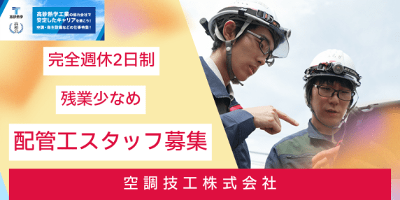 年休122日&残業少なめ|空調・給排水設備の配管工|完全週休2日・賞与年2回+決算|経験者優遇!