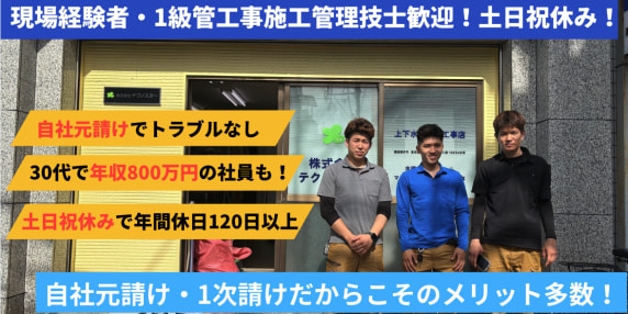 ◆1級管工事施工管理技士大募集!職人も経験者歓迎!◆賞与2回+決算賞与/支給額3ケタ超え!土日祝休み