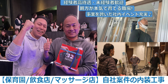 <月給50万円可>内装軽鉄/ボード工募集!入社祝い金20万支給!社宅&家賃補助有+有給消化率100%