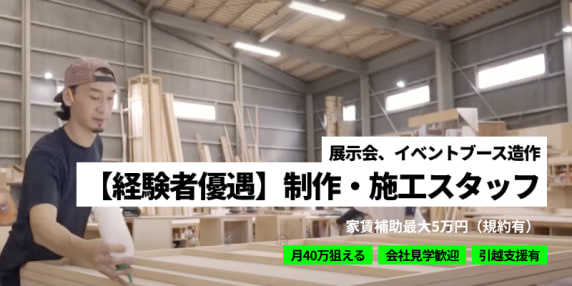 〔オーダーメイドのモノづくり〕家賃補助あり!イベント造作・什器の製作〜施工スタッフ&管理募集中!