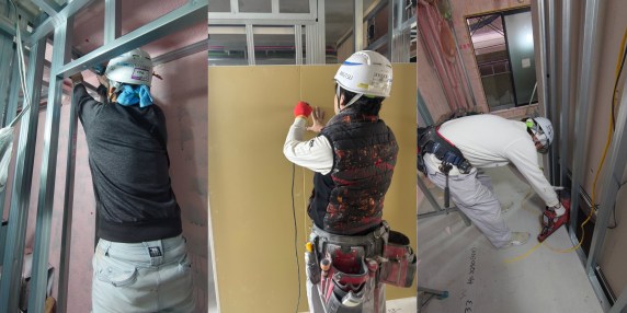 施工管理(建築)、大工、ボード、LGS、左官、建具、家具施工、造作、クロス、貼床