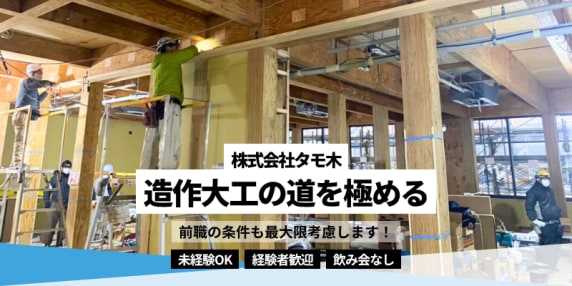 大工、貼床、建具、大工(展示会)、造作、補修(リペア)、家具施工、施工管理(建築)