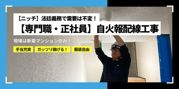 【一生モノのニッチな技術】自火報配線工事!法定義務で需要は不変!月給26万〜50万+賞与2回!
