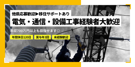 ▼多角的事業展開!〈電気通信設備・電気設備・電気土木工事〉経験性別不問で施工スタッフ募集中!