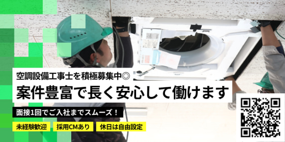 《空調設備工事スタッフ》年間通じて安定★未経験でも月25万以上!経験者も優遇◎頑張りは即給与に還元
