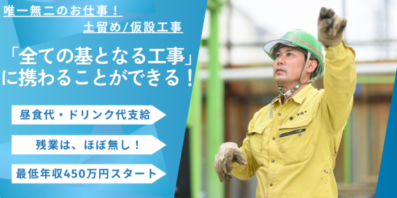 ◎誰でも年収450万円~スタート!【土留め/仮設工事】残業ほぼ無しでプライベートも充実◎