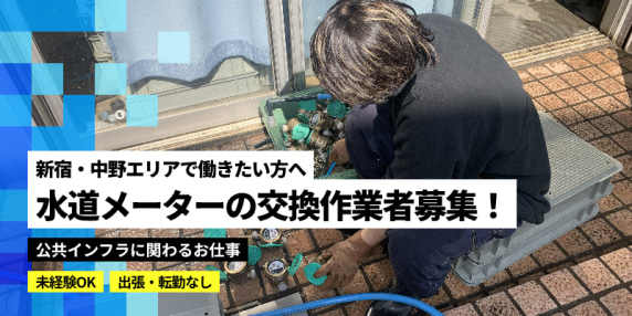 【新宿・中野】転勤なし×公共事業で安定!未経験歓迎のメーター交換。残業月10h以下で帰れる