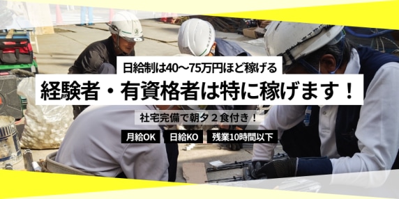 【職人・見習い募集】型枠大工解体◎休日は自由設定可能!社宅完備で食事も提供!経験者は月給40万から!