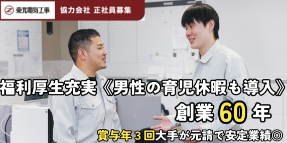 若手もベテランも成長できる会社で電工募集◎終身雇用も可能な待遇充実‼直行直帰OK︎▼